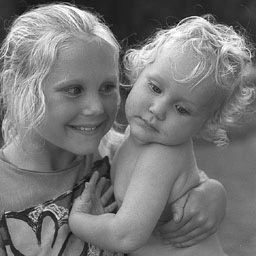 This is the result of assigning just one computer bit to each pixel in our image. We can have either black or white, with no gray tones in between. Everything below mid gray becomes black, everything above mid gray becomes white. This is how computer displays looked before graphics came along. |