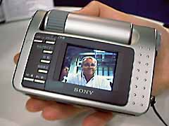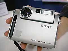 Front and back views of the new Sony DSC-P1 digital camera which produces 640x480 pixel images. The small picture of JH on the 1.8 inch diagonal colour LCD viewfinder is real.