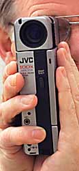 LEFT: JVC's digital camcorder is not much bigger than a small audio cassette recorder but records one hour of near-broadcast quality moving images and 16 bit stereo sound on a Mini DV Cassette. Note the 'Snap Shot' button on the front of the camera. This captures a still image with about seven seconds of sound - though any one of the 90,000 individual frames on the videotape can produce a good still frame.