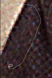 You'll soon get the hang of it, though you will also learn that this process is labour intensive - the computer cannot make the selection automatically on this image. Eventually, you will have built your selection, step by step, to cover the whole of the figure. The 'Crawling Ants' show the selected area - note that they also run along the bottom of the image and part way up the left and right sides to complete the path all around the selected area.