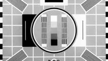 Early 405-line pictures suffered from poor geometry and limited resolution as the above frame of telerecording shows. Compare this with an original 2 x 2 inch photographic transparency of Test Card "C" (below). Both are 4 x 3 (1.33 to 1) aspect ratio.