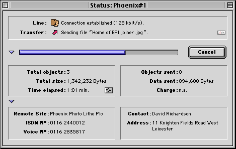 Although ISDN sounds complicated, it really is straightforward. Most of us are familiar with a modem -- MOdulator/DEModulator -- which converts the bits and bytes generated by our computers into an audio signal, to be sent along an ordinary (analogue) telephone line, intended for speech. You've probably learned to wait patiently as your modem makes strange squeals and squawks for a minute or so as it shakes hands and identifies itself -- and you -- to your Internet Service Provider. Maybe you use the time to pray to the Internet gods that the connection will be fast and stable? Well would you believe that, after you've forked out for the latest 56k (kilobits per second) modem, the first thing that BT does, on receiving your modem's sounds in the local exchange, is convert them back into digital form. From the local exchange onwards the signals remain in digital form. So why not keep the signals to and from your computer in digital form -- all the way? Indeed, why use a modem at all? Until recently, ISDN was regarded as something strange, futuristic, special -- and expensive. Except in Scandinavia, that is, where ISDN is the norm, even in domestic telephone installations. Installation costs have been high: a basic ISDN installation from BT still costs £199, though there are now some really good deals. An ISDN line has two channels, each of 64k bandwidth, and these can be joined together electronically to achieve a speed of 128k. At 64k, call charges are exactly the same as for any other call but at 128k call charges double. You might not think that the speed difference between a 56k modem and 64k ISDN is worth the change but it is. You notice the difference as soon as you log onto the Internet. From clicking in your browser, dialling and identification takes all of two seconds -- in silence. The other surprise is the speed of connection. You might like to believe that your modem motors away at the full 56k but it doesn't. In my experience single-channel ISDN surfing is at least two or three times faster than the fastest modem, yet it costs no more for the call. I never surf with both channels, though I might choose to use the facility when wanting to download big files from the Internet. But as a BT Internet subscriber, I can surf all weekend for free on an 0800 number. That's the time to download big files. ![]() A month after that Friday afternoon experience three years ago, I finished the images for the next Chip Shop at 10pm. All that remained was to drag the whole folder of images onto the Phoenix Photo Litho entry in my address book on the computer desktop and go home. When I returned, the images had been delivered and confirmed. All for the price of an off-peak phone call. ![]() There was no need to copy the images to a SyQuest -- today it would be to a CD-Writable, Zip or Jaz cartridge -- no need to write a covering letter, to pack securely for transit, to drive to the post or call a courier. No need to keep records to check that the expensive cartridges have been returned (so many never were). In short, absolutely no fuss and -- most important of all -- no time wasted. Since then I have sent all my Chip Shop images by ISDN. In fact, I now use it to send images everywhere, including Dunn's Imaging for printing on their 20x30 inch Kodak LED printer. The finished prints arrive by post the next morning. For the past three years, the equipment we have been using to send images is iSDN Manager from 4Sight, a British company based in Bournemouth. A NuBus card with an ISDN socket resides inside our Power Macintosh 8100/80, saved from redundancy because it is the only computer we still have which will still accept this type of card. The system has worked flawlessly every month, not only for sending images to The Photographer but also to other publications. When editors realise that you can get a full resolution image to them in minutes, they tend to phone at the last minute, so we are now working on an on-line picture library of an archive of images spanning nearly forty years in film and television. Images will only be supplied in digital form by ISDN. More of that project some other time. In March 1998, 4Sight merged with Wam!Net and launched a high speed digital delivery network which enables big publishers to deliver jobs at speeds of up to 2000MPH -- that means Megabytes Per Hour. ISDN Manager is still available, now known as 'Transmission Manager'. Wam!Net is a private network service for those moving serious amounts of data around. It acts as a digital courier system, routing images to where they need to be but without the need for bikes. Charges range from £30 per month for 50MPH (software only for use with an existing ISDN line and card), right up to £5075 for 2000MPH in the most expensive zone for data lines. This is equivalent to something like fifty A4 CMYK images per hour and I know of no photographic studio with this level of output. Even the most prolific catalogue studio would probably be able to manage with the 100MPH option, which uses two ISDN lines. This costs £60 per month for software only, or £85 per month including software and card, plus a charge of 6p per megabyte (national) 18p (international). Although iSDN Manager is great for point-to-point delivery of images, I could not configure it for Internet access via a dial-up account. For this I have a credit-card size Hermstedt Marco PC card which slots into my PowerBook G3. This has been our ISDN Internet access method for two years. ![]() The Macintosh 8100 in which our ISDN card resides also drives our scanners. Although its speed is fine for ISDN, we wanted to use a G3 or G4 to speed up scanning and subsequent image clean-up. This necessitated getting a PCI ISDN card, because Apple no longer use NuBus. Wam!Net do not make hardware but support cards from SCii, Harmonix, SAGEM, OST and Hermstedt. Remembering the ease of use and configuration of the Hermstedt PC card, we opted for a Hermsted Leonardo SL ISDN P